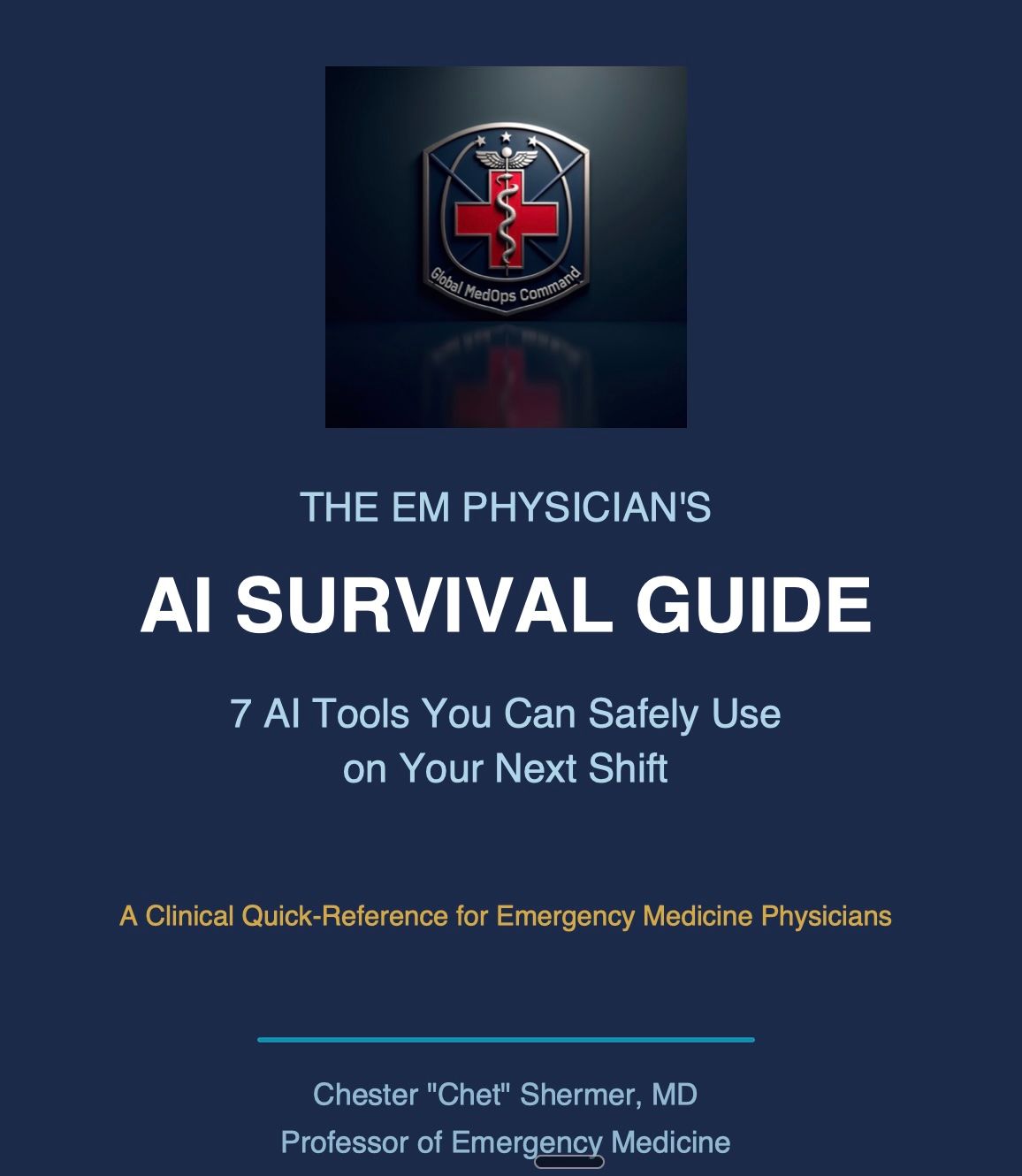 Dr. Chester "Chet" Shermer, MD, is an emergency physician, HEMS medical director, and founder of Global MedOps Command. His course, AI in Emergency Medicine: Becoming AI Bulletproof, is available at globalmedopscommand.com.